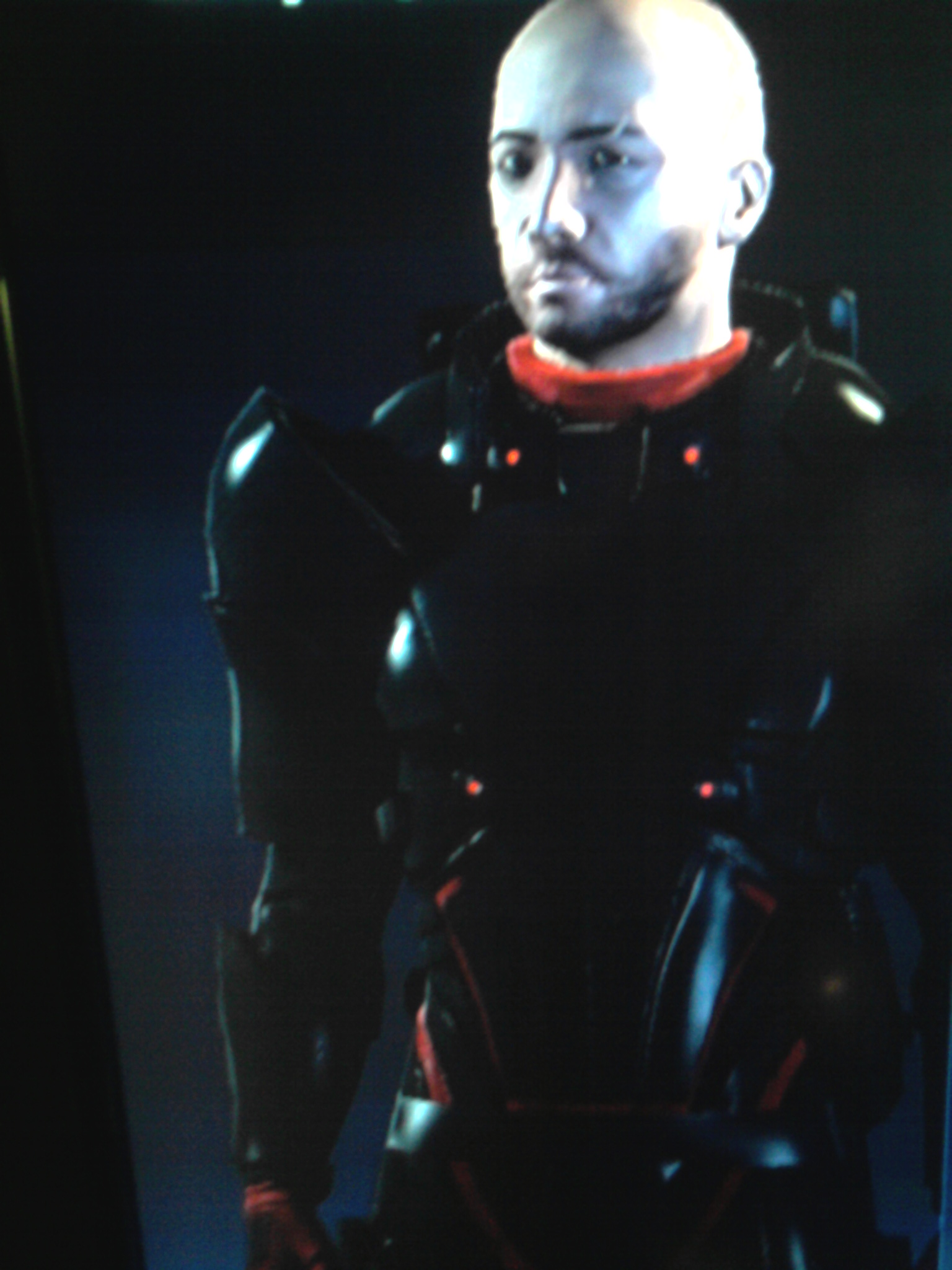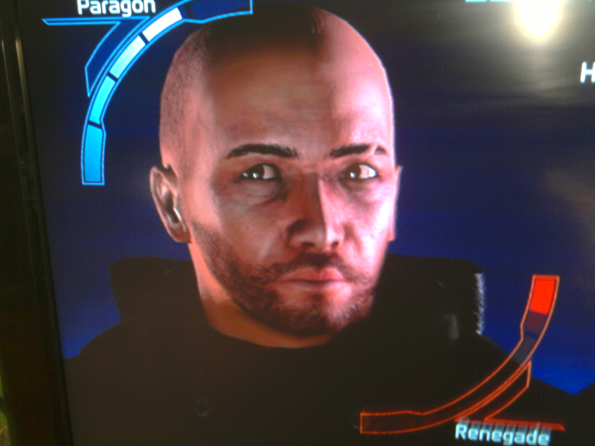 Here's mine. Bald, beard and scars Shepard. As you can see, a goody two-shoes soldier LOL.Originally posted by Enetirnel View PostAh, I use a biotic Shepard combined with medi-interfaced armor and a few other things. I use a shotgun with customization to lessen the chance of it overheating as well as a firing speed enhancement and the radiation poisoning bullets.