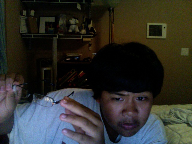 Oh snap, the glasses are off! Say Ray, what's that white square thing on the wall behind you? Probably a thermostat, but it reminds me of eithier a built-in safe, or a built-in microwave Wait...is it a frame?