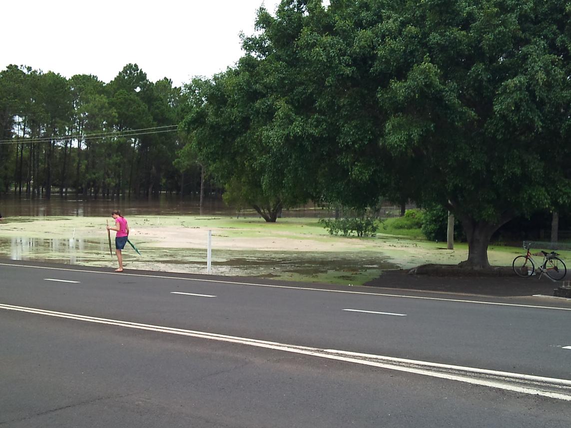 We are having a huge flood here, and my access to town has been completely cut off. The pictures below were taken yesterday, before it even hit it's peak overnight. This morning the rivers are even higher, so I will go down and take more pictures for you to see. This is only about 2 streets away from where I live