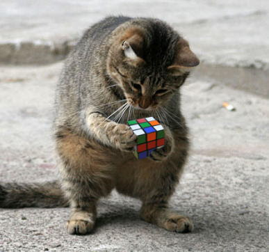 On a related note: There's some kid on vacation or something in my hometown that keeps dropping by my shop frequently and always carries one with him (But it's always solved... wonder what'll happen if someone were to fiddle about with it) :s