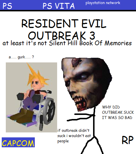 But seriously though hoping for a new Outbreak is like hoping for the REmake to get ported to the PS3/360. It's never gonna happen. We'll be lucky just to get the first Outbreak on PSN.