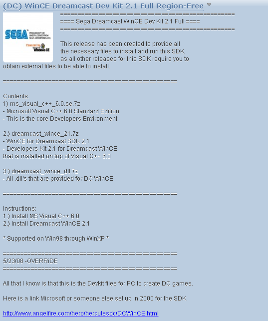 Gemini is pretty much stricly doing it for PSX and PSP. That doesn't mean it can't be done however.Originally posted by Ss4gogeta0 View PostNot sure if you would be interested, but there is a website that is hosting the full Dreamcast Dev Tools...