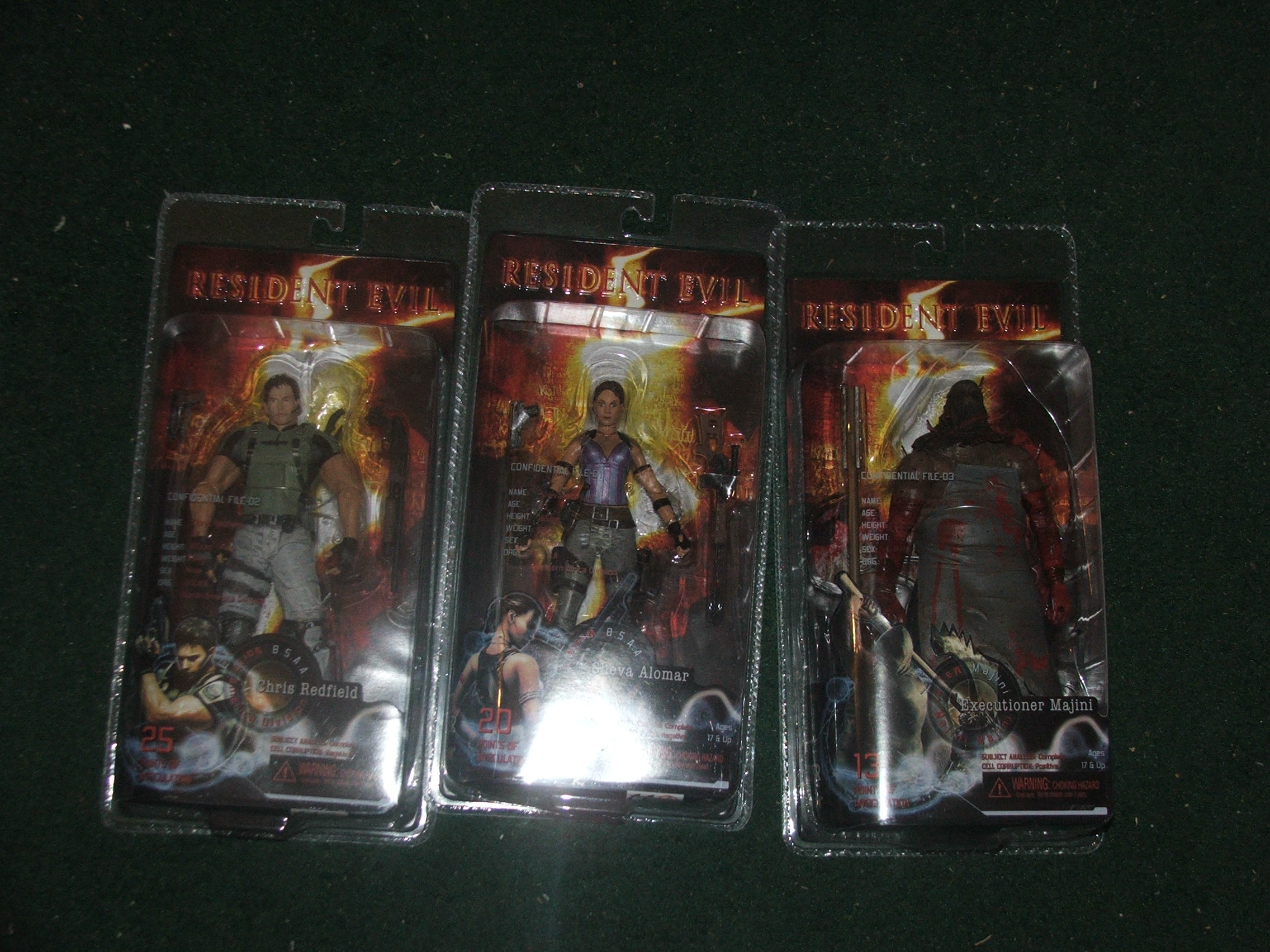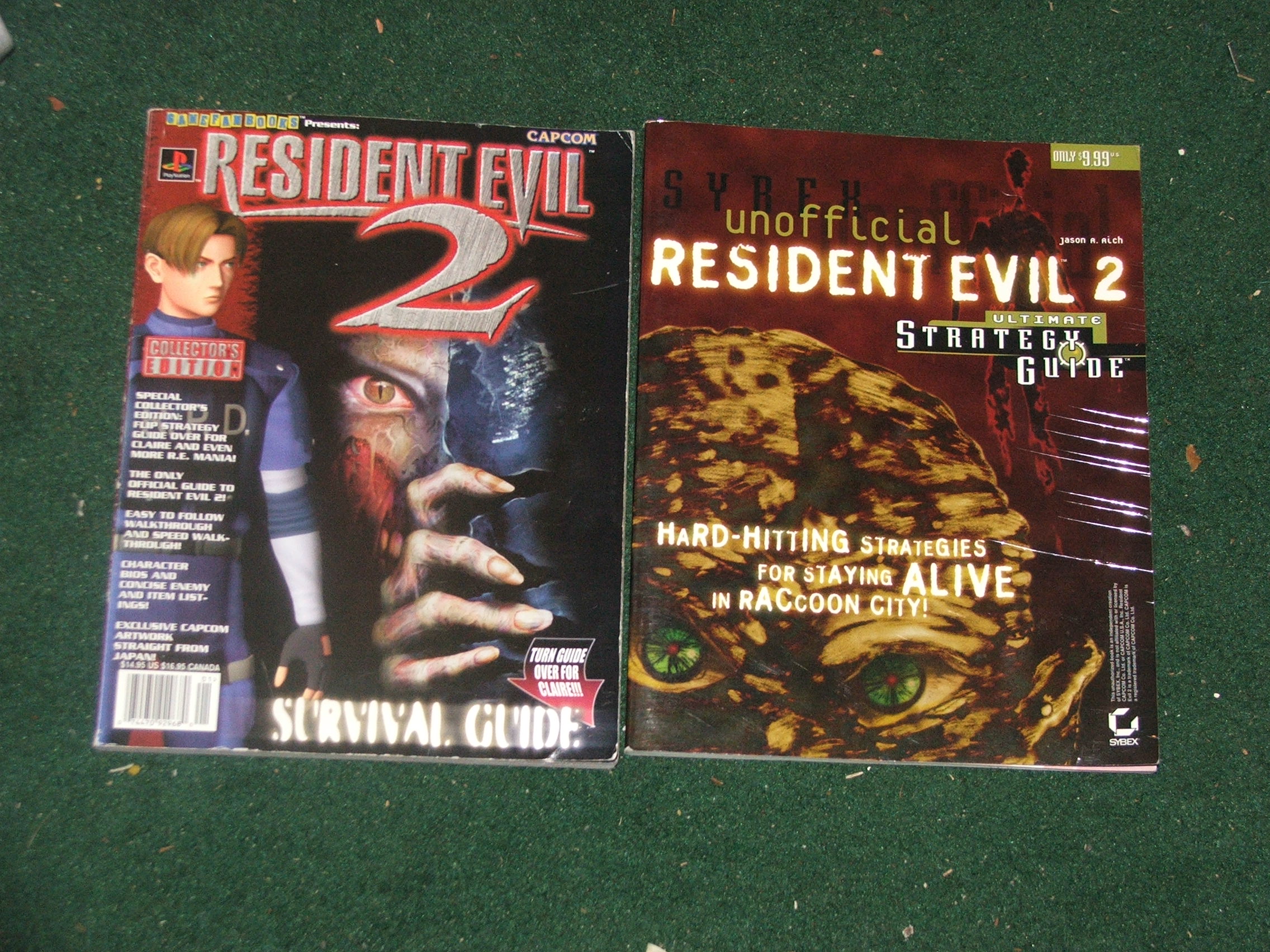 • my resident evil 5 toys came in today! plus i founf these 2 RE2 guide for a flea market place for about $5 each the one on the left is a double side with claire