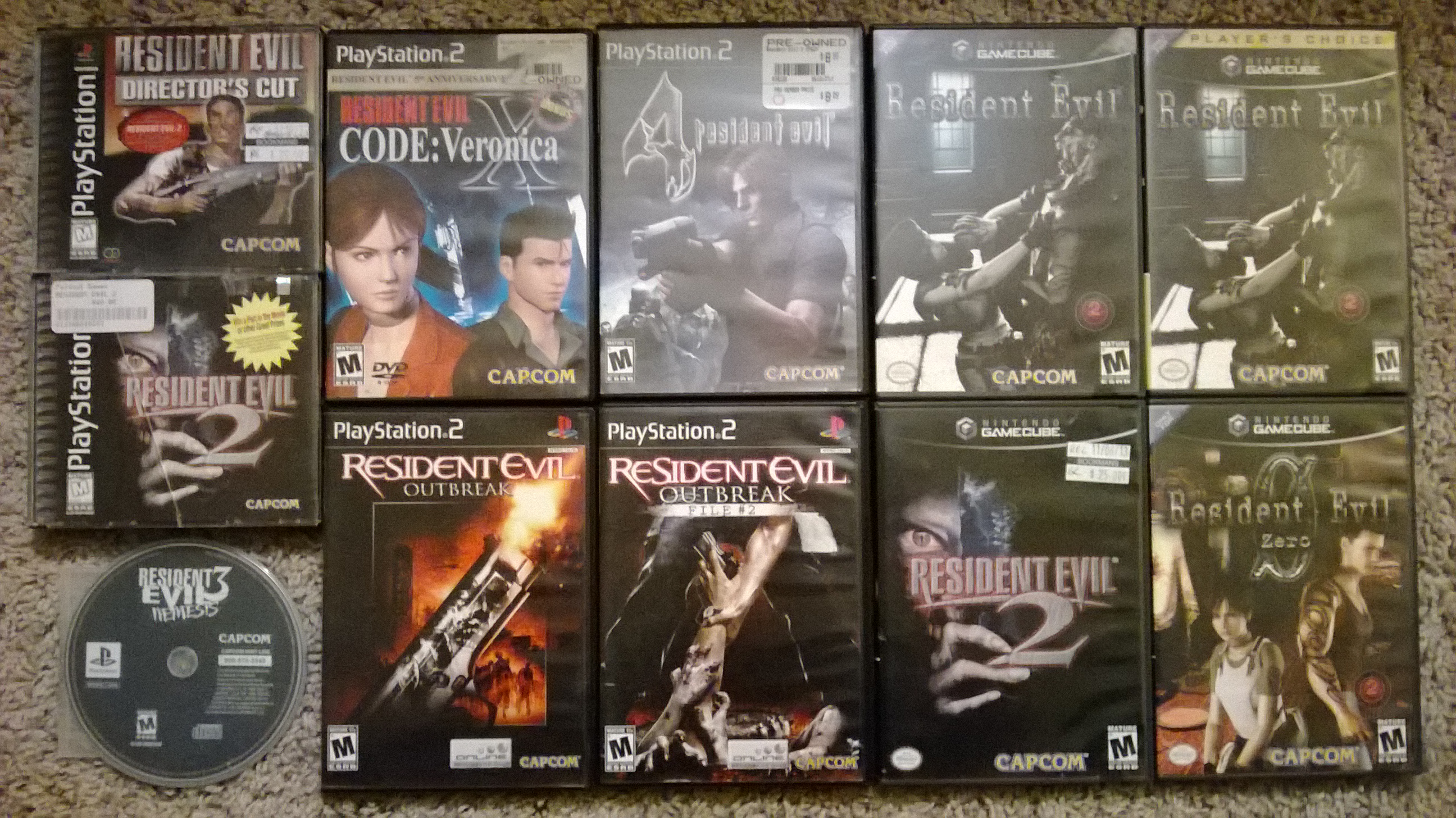All the games listed are the ones 'in collection' which I do not play with, with the exception of the GC and new RE6 because I haven't gotten dups of them yet. My collecting started when I began buying duplicate copies of my games so I would always have a copy to play if something 'bad' happened to my copy. I have DL copies of all in my PS3 (had to get the new HD versions of RE4 and CV, just wish they came out w/hard copies). I am trying to increase the number of sealed copies that I have and I'm going to start getting some of the less cannon versions such as Dead Aim and the Outbreak files. I'm just really picky about my copies having everything intact ;) I am also planning on trying to obtain every cover of Revelations, because I really loved that game. I did have the limited edition soundtrack for that game, but it was pricey and soundtracks don't really blow my skirt up so I decided to sell it so I could add something a little more meaningful to the collection.