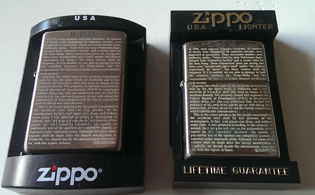 Biohazard RPD Zippo. Released in 2000/1? I had an old dirty one (right) but found a newer one to replace it.