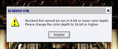 Oddly enough I have my color depth in 32-bits... so I change the hardware especifications to work with "Non-Accelerated Version (System Memory)" as the options advise and the problem continues. Besides, the RE1 included in the disc has all the options availables in english not russian, even though the installer is in russian. But thanks to the problem above I can't say if the game itself is all in russian as the RE3 one or is just an english bonus for the russian RE2.