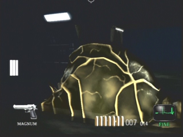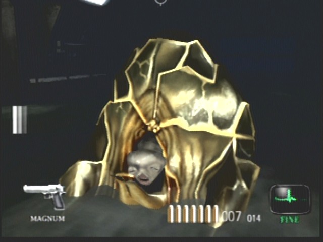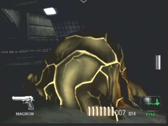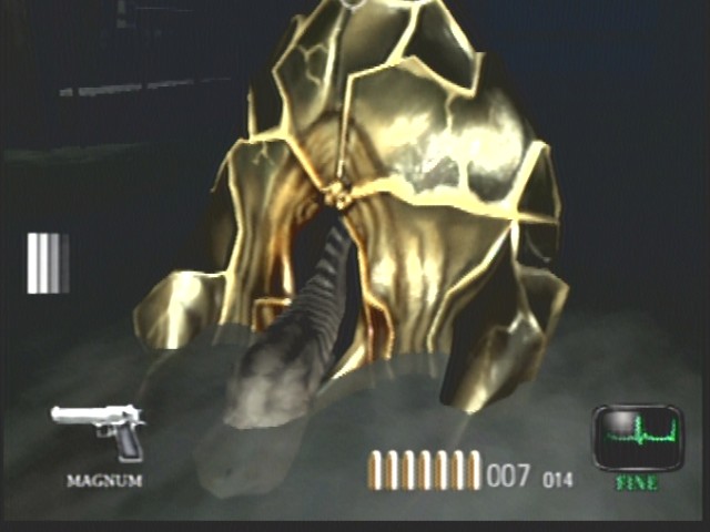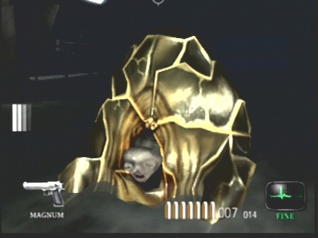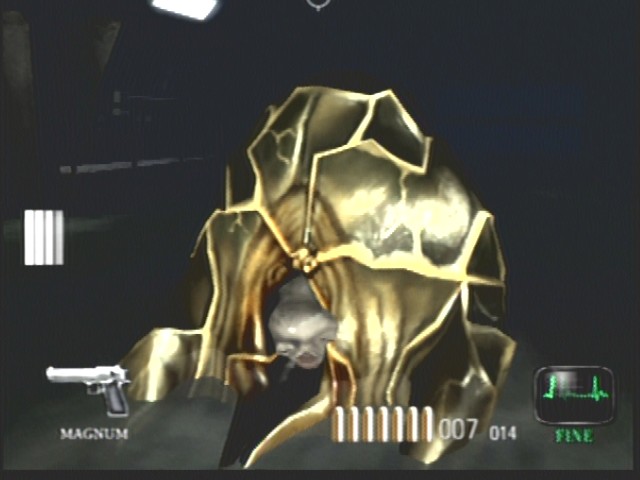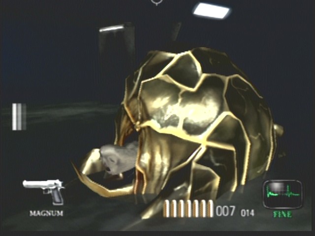 I replayed Dead Aim just recently. The 'sperm' is easy to just run around and the fat 'Turkey'/slug/blob thing dosn't even move. I shot it a couple of times at close range and it just sinks into the water. Is that its death animation?