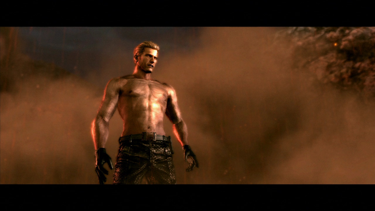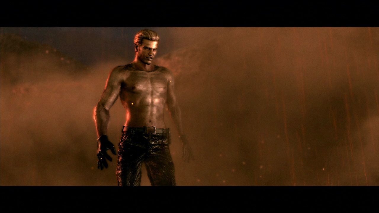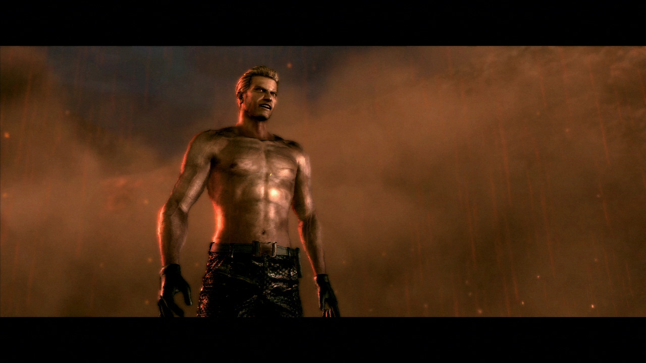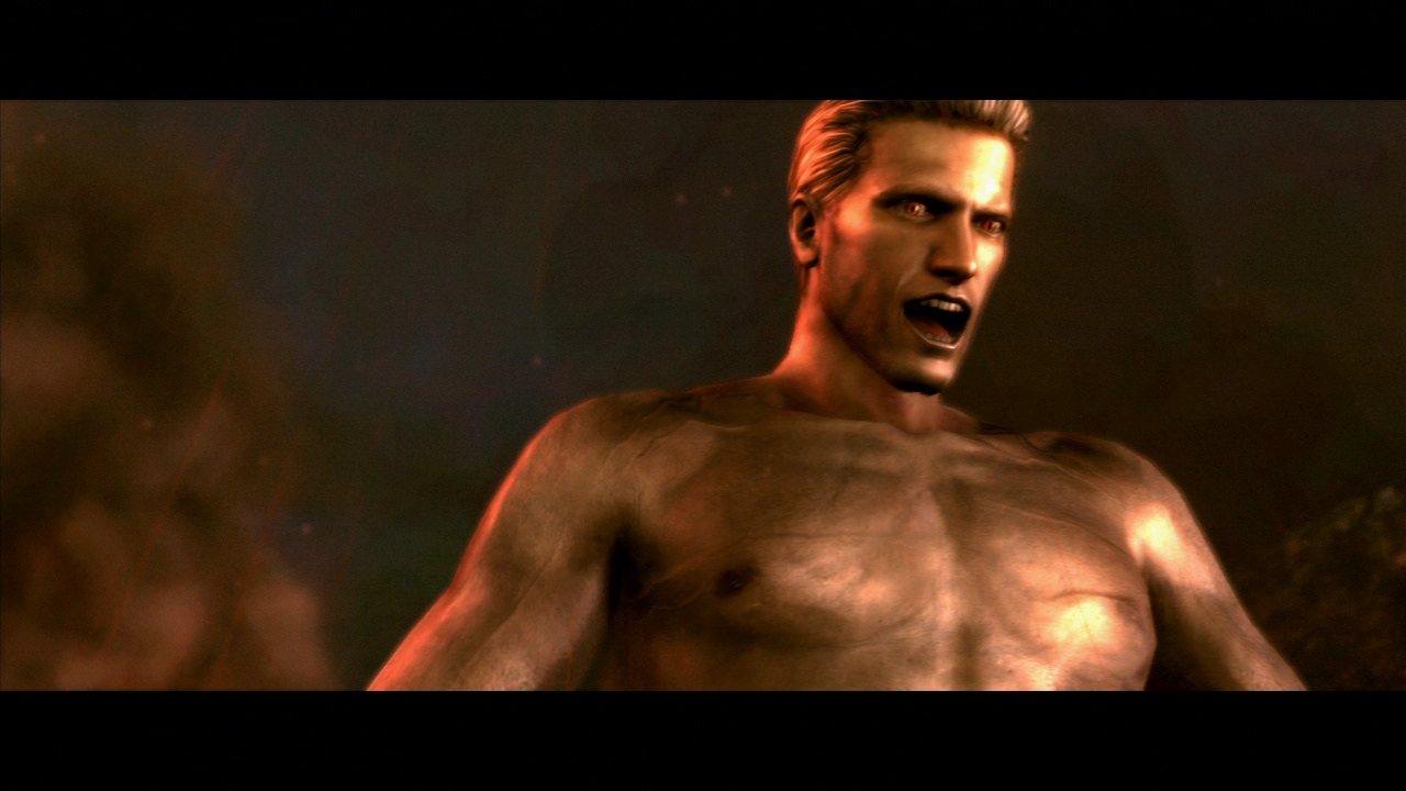 I'm not going to be all disgusting and freak anybody out, so I'm just going to ask very nicely if anyone could please aquire a range of screenshots of Wesker when he goes topless.
