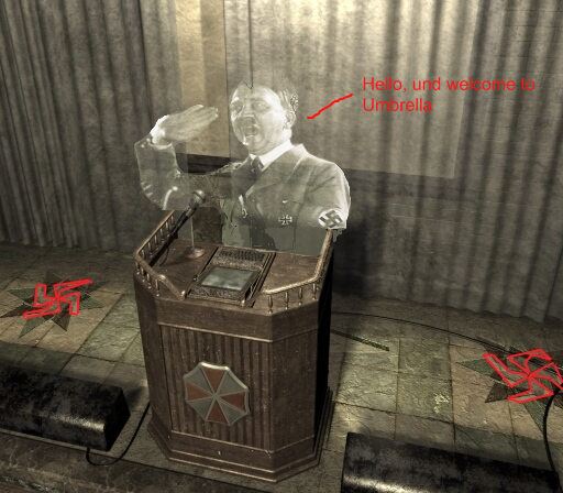I have found this background from resident evil...its seems there are two Fylfots or call it Hakenkreuze on the left and the right side.Take a look.