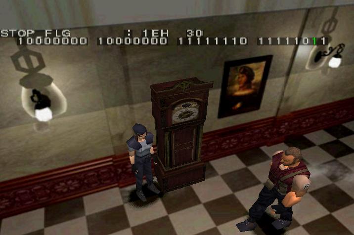 Figured it out lol! I wish I remembered more about this game, would be much easier knowing what I'm looking at... Got no idea about Barry stopping in front of the clock like you say; someone mentioned there was a video? Have you got a link to it? I know what the room flags do in this room now and none of them seem to indicate any interaction between Barry and the clock, tried all the things I could (so far) to force it out and I'm pretty confident there's nothing there. Seems a very unique thing indeed...