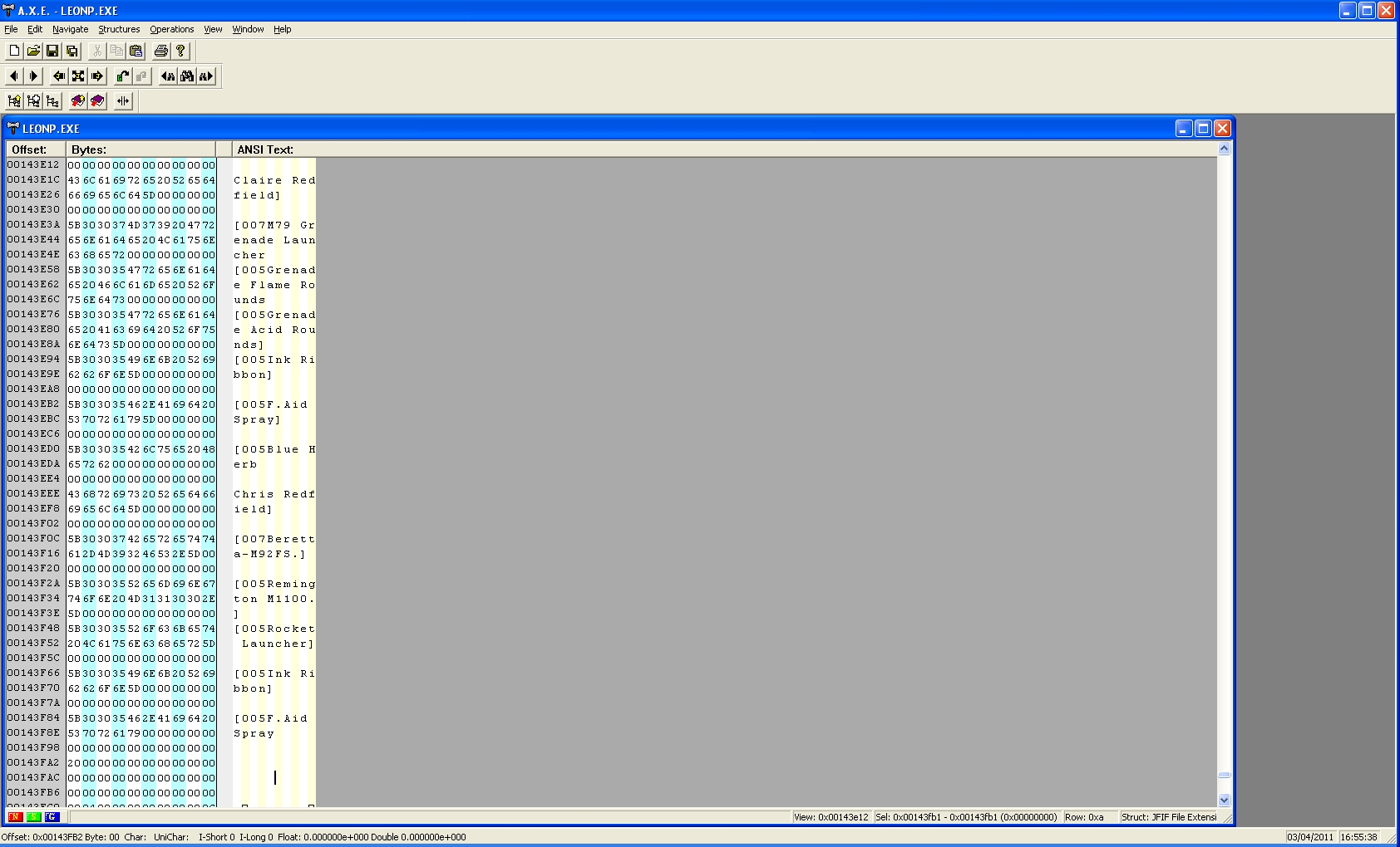 I know he was in RE2 Dual Shock Edition as a extra but was he supposed to be in RE3 Mercs? I don't recall ever playing as him in RE3, this is from a certain SELECT.BIN ;-) of which I'll reveal more info on later, I'm not sure if the SELECT.BIN is used by the main game or mercs but it has no refrence to Jill which leads me to believe it's for mercs, MIKHAIL CARLOS NICHOLAI are referenced also.
