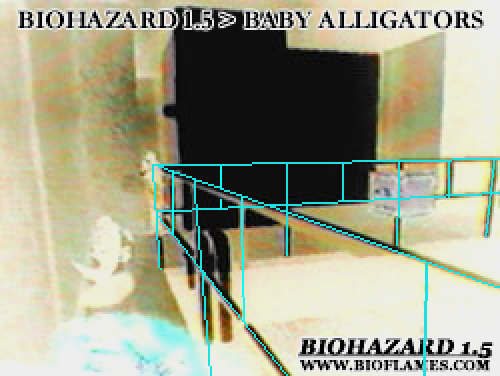 • No no, you just made my point SonicBlue. Those pics are from finished rooms. This croc room is very clearly unfinished. If you look around, there is nothing on the walls. Zip, zilch, nada. Pipes, posters, trash cans, garbage, nothing there. It just strikes me as odd that of all the things they would be putting in this painfully-unfinished-room at that time, a piece of pipe that just serves as a piece of background fluff would be one of them. Unless, it is something more important. 'Sides, as it is, the thing stretches across the whole floor, which is also weird. Unless, it is showing through the backround A case could be made for either of these, but at this point, it would be strange if at least one of these wasn't true.