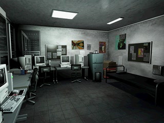 However, we can only map the first floor layout of the RPD with complete accuracy, though we don't know what the eastern hallway or (what I believe to be) the eastern stairwell looks like. We ALMOST have the basement fully understood; if only we knew for sure what lies around the corner nearest to the western stairwell door, most of our questions (regarding the basement) would be answered. As for the second and third floors of the RPD, we know very little. We do have a collection of fragments from the second floor, which we could possibly piece together with limited accuracy (Chief's Office, Conference Room, a few hallways), and we know that there is also a media room, medical room, and radio room, though we have no legitimate images of them. We know the makeup of the helipad, and that of the staircase leading down to the third floor, but all we have of the third floor interior is (as far as I know) a couple of hallway shots. Thus, the only way to recreate the entire RPD is with a fair amount of educated guesswork and some original creations (c2keo made an original Radio Room, which I think looks very nice).