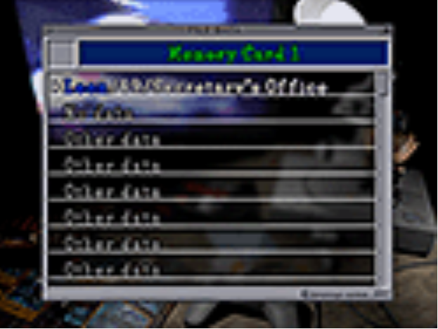 Your new avatar... The memory card screen is looking nice and more retail with the 'Inventory System 1997' windows. Original build just had text and didn't look right. I see Leon is saving in someone's office. "Secretary's Office"?