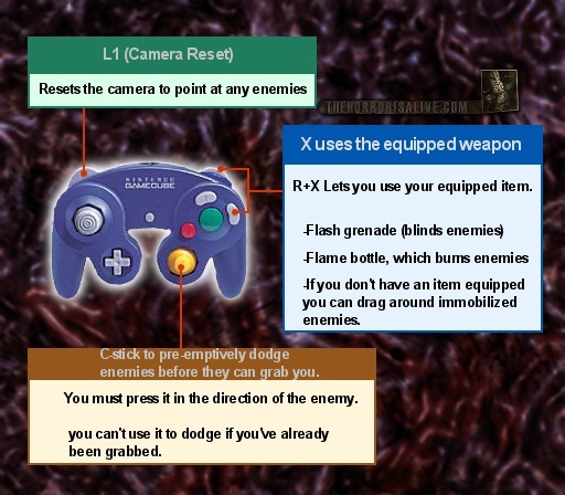 this control scheme are the exactly pics from disc or a total mod from original with english/ hi-res backgrounds etc? these scheme looks very cool. it makes me angry to see the 3.5 enemies. and carrying the immobilized creatures means they still alive(or dead monsters wont disappear)! that would be totally mind blowing, leon carrying a screaming and moaning creature which cant move and want to attack the hero...