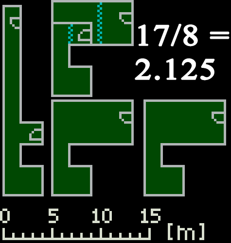Also, the maps have an in-game scale ruler with 1 pixel being the equivalent of approximately 0.25 m. This is not a completely accurate way of measuring rooms though, BUT there is another possible use for it. In the example above, the width of the hallway segment leading back to the lobby is 8 pixels wide, while the correspondng width on the second floor hallway is 17 pixels wide (I marked them in neon blue in the picture). The second floor hallway is therefore 2.125 times as wide as the corresponding hallway segment on the first floor. Since DXP can import the official camera angles from RDT files to a 3d modelling app, he can faithfully recreate the dimensions of the first floor shutter hallway by tracing over the backgrounds. From there, he can adjust the size of the recreated first floor shutter hallway dimensions to perfectly match the intended dimensions of the second and third floor hallways by calculating the size difference using the map dimensions.Last edited by biohazard_star; 11-14-2014, 10:36 AM.