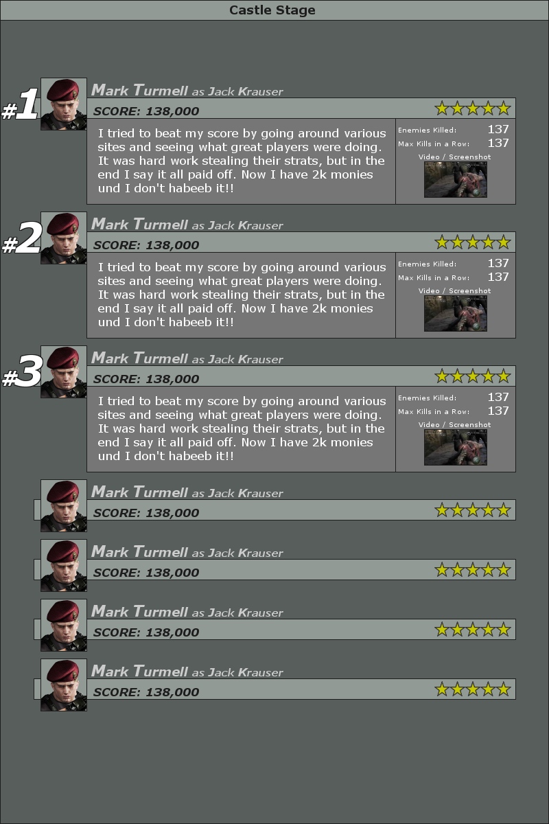 I just had a small idea, wouldnt it be cool if there was a place on the site were you show videos of your self playing resident evil games and showing people your mad skills against bosses and so on? There could be compititions and things like that maybe.