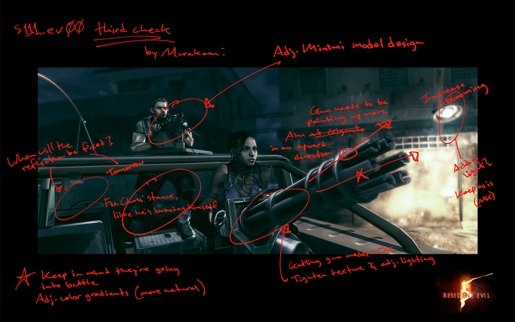 Or when Sheva has a hard time getting the Africans off; she would give Chris hold of the gun instead, since he's more experienced in weapons.